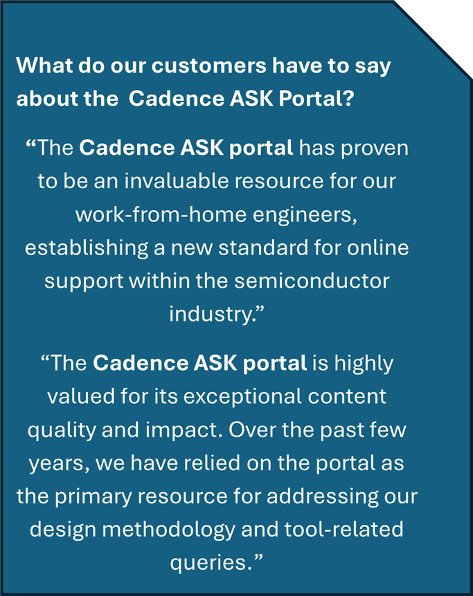Mega Read this blog to get an overview of the benefits of using Cadence ASK Portal