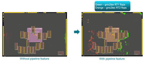• GigaPlace also introduces Advanced Pipeline Placement, which automatically collects pure F/F pipelines and balances stage spacing/point-to-point wirelengths; note. It eliminates skewed pipeline structures and produces smoother point-to-point wirelengths, yielding better data path symmetry and higher achievable frequencies.