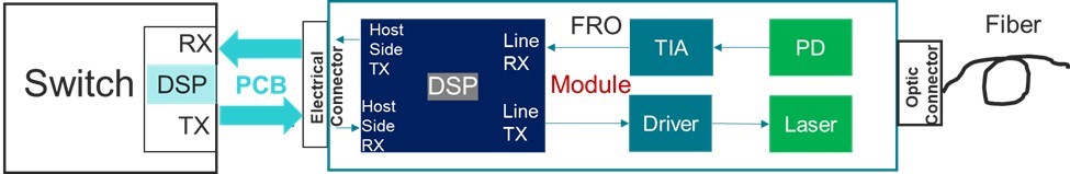 FRO modules offer the highest levels of signal integrity and interoperability by employing DSP-based retiming on both the transmit and receive paths. This superior signal performance comes at the cost of higher power consumption, increased latency, and greater expense.
