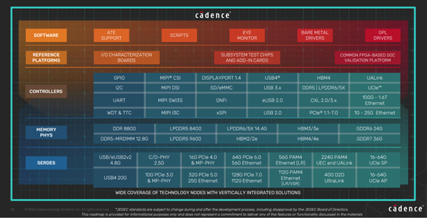 Networking scalability is equally critical in AI factories. High-speed SerDes technologies drive interconnects like Ultra Ethernet, UALink™, and PCI Express® (PCIe®) 7.0, which are essential for efficient scale-up and scale-out approaches within AI systems. The versatility of these SerDes solutions allows multiple protocols to operate efficiently over the same hardware backbone, offering flexibility for diverse deployment needs. Cadence has made strides in delivering SerDes and PHY IP with exceptional system performance under the most stringent operating conditions and energy efficiency, enabling error-free operations in even the most demanding environments. These breakthroughs are foundational for the seamless connectivity of accelerators, CPUs, and storage within next-gen AI factories.