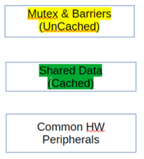 Figure 2 illustrates a shared memory map. Data shared between RISC-V and Xtensa cores, highlighted in green, can be cached by both cores. While using a coherent fabric is possible, it requires a significant amount of additional area. Alternatively, a non-coherent fabric like Janus NoC can be used, with code written to ensure cache coherency. The Xtensa SDK includes cache flush APIs as described in the system software reference manual. Most RISC-V SDKs support similar API’s as well. Both RISC-V and Xtensa cores need to access a shared memory space, but do not require identical views of it. Memory locks highlighted in yellow in Figure 2 are uncached by all cores.