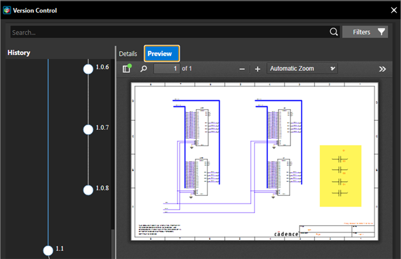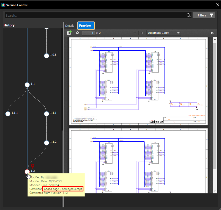 The Version Control feature in Allegro X PCB System Capture is designed for simplicity and robustness. Each design version is stored with a clear revision history (major and minor), including timestamps, user information, and comments. Here’s an overview of the versioning tasks you can do: