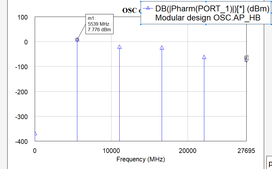I am designing a 2-port negative oscillator and trying to verify the oscillation frequency by looking at pharm after placing oscaprobe. I have two questions.