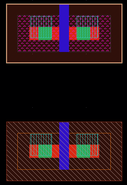 I have some layouts done in older IC version (5.1.0) which are DRC and LVS passed. Now after translating them to OA for the new version, 6.1.5, I get DRC error ("P+ Diffusion overlap Contact is 0.1um" and "N+ Diffusion overlap Contact is 0.1um"). Upon closer look in the layout, the overlap of S/D area with metal1 in PMOS and NMOS seems distorted (Please see the attached picture). This problem exists even when I try to make a new layout, so there could be a problem with the cdb to oa translated technology library itself.
