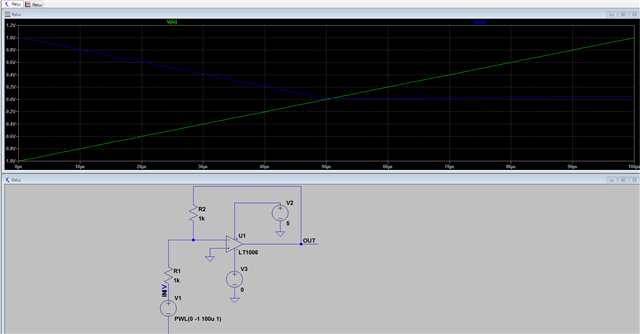 In Spice, there is one support single supply opamp, so I can cut negative input voltage.