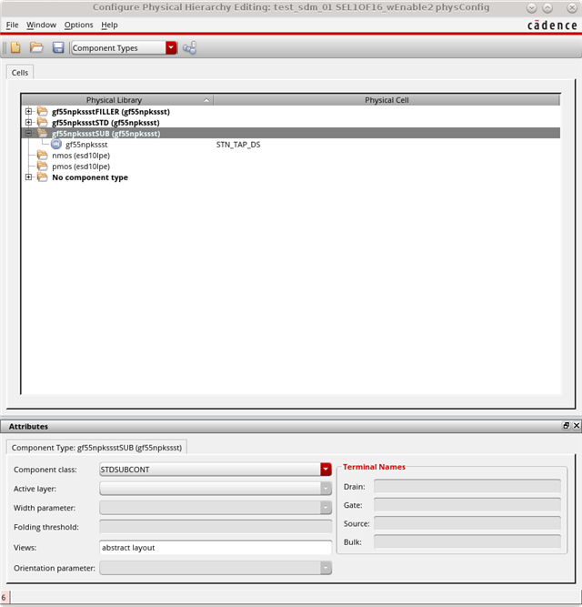 2. Have a valid cell in my component type, but have the list of views not matching the actual views in the library. Do you have an abstract or layout view of the cell STN_TAP_DS in your library?