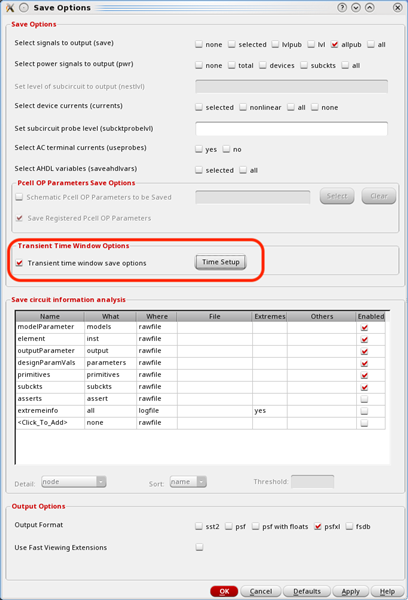 I am running a spectre simulation from the command line and, as my simulation is large and extracted, I'd like just to save the tran results over a certain period. Not for the whole simulation.