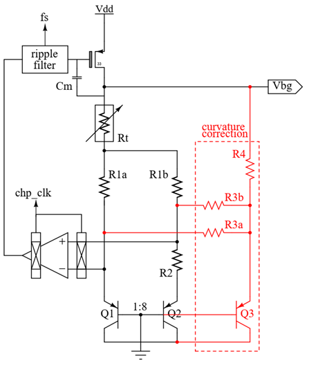 The circuit I'm simulating is a chopped bandgap reference with curvature compensation.