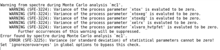 Thanks for your reply. It does not work for the given design kit, but works for the MC model created by ourself. There come more details today. When I open the file "spectre.out", it appears as follows: