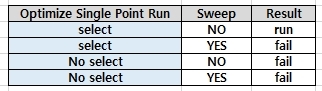 I did not select "Optmize Single Point Run", and I disabled all sweeps. Then it failed.