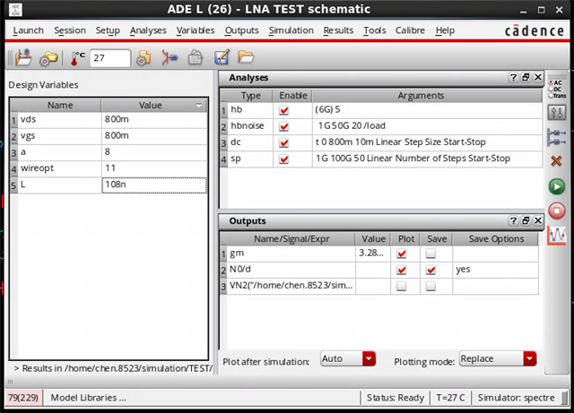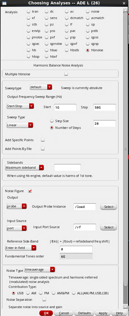 I tried to extract drain current noise power of a single RF NMOS transistor in order to plot PSD versus gm with different gate width. I'm doing with sp, hb and hbnoise while it seems like I can only get the voltage noise. The attached pictures are my testbench and some settings. How can I get the drain current noise versus gm? Should I use ideal dcfeed/dcblock or non-ideal? And how can I plot output noise current power through noise analysis of ADE L? My version is IC6.1.7 - CAT35 with 22FDX PDK. Thank you!