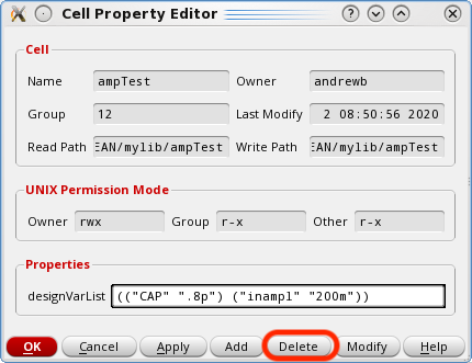 Click within the box that says the value for the designVarList (e.g. the black highlighted region above) and then click on the Delete button and OK.