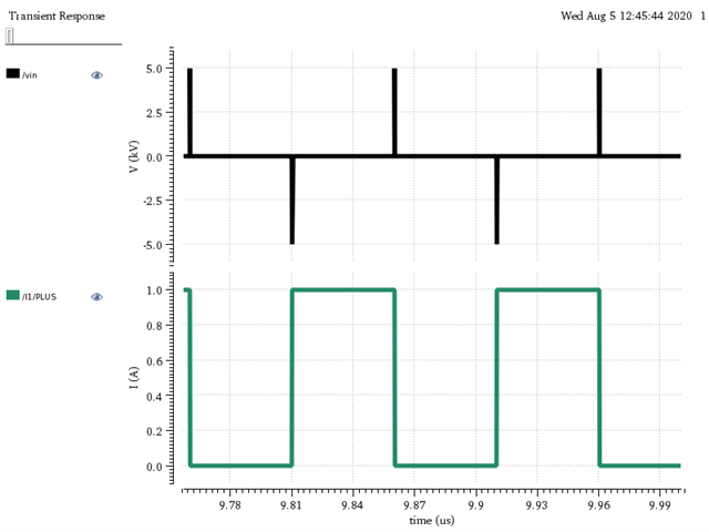 I1 (vin 0) isource type=pulse val0=0 val1=1 period=1/fs delay=10n \