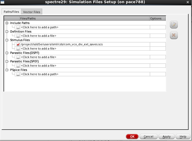 ERROR (SFE-874): "../netlist/stimuli/save.scs" 3: Cannot run the simulation because syntax error `Unexpected hierarchical name "cdr_vco.vco_biasvosc.osc.oschi.Xbuf0_Xinv0p"' was encountered at line 3, column 0. Correct the syntax error and rerun the simulation.