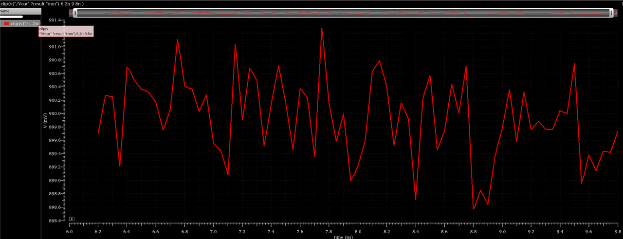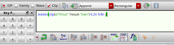 I like stddev function to calculate the rms value of noise. For example, I clip a period of Vout with noise. The dc of Vout is 0.9.