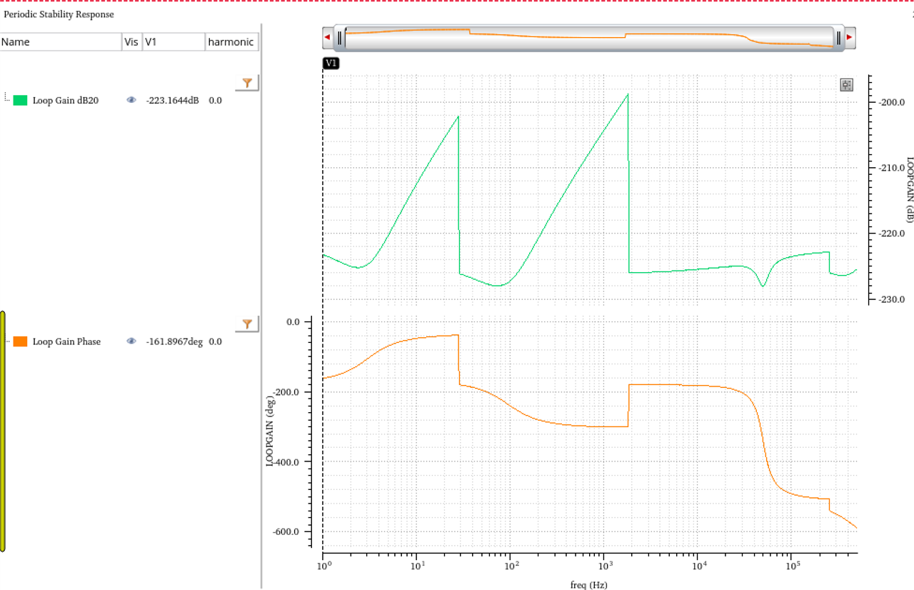 When I res-simulated the loop gain magnitude is not exactly zero but very low!!