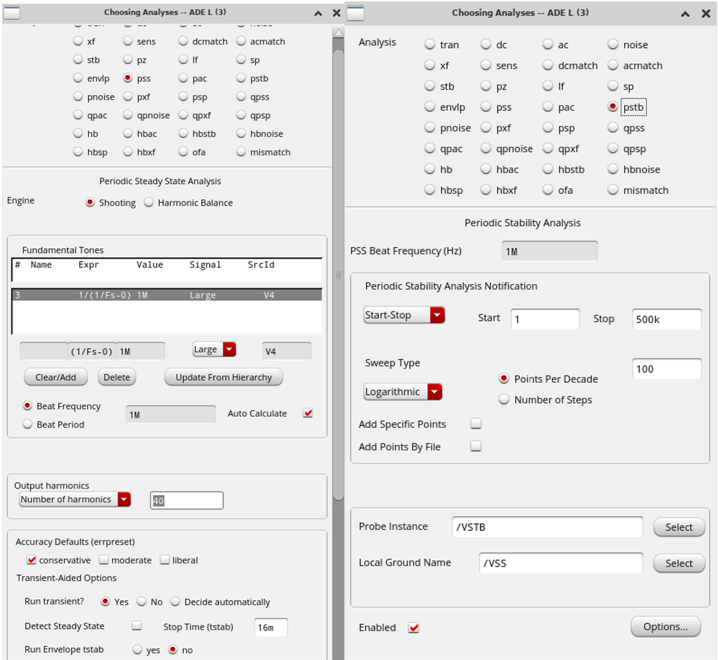 If you don't show us your schematic, this will be very difficult. You have to put the probe at a node of the loop that is not being switched, because pstb examines sideband 0.