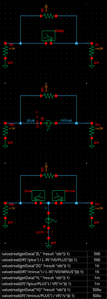 In Virtuoso 23.1 ISR14 and Spectre 23.1 ISR13, the results YG, YL, ZG, and ZL have been added to the stb analysis (see page 9 of https://support.cadence.com/apex/ArticleAttachmentPortal?id=a1OPP000001RAnV2AW ). As the official documentation on these quantities is a bit incomplete from my point of view (I have asked for improvements in Case 46927677), here is a simple example that hopefully shows all the details.