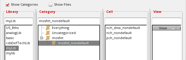 Then I am getting list of cells I need to add to this new category. Those cells already exist in "mosfet" category.