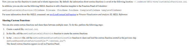 You can just call awvLoadCustomCalcFunction directly without the extra file. The only benefit of the "central.ini" type approach is that the file is the same as that saved by ViVA in your own ~/.cadence/dfII/viva directory, so you can re-use that - and it's one file that everyone can reference.