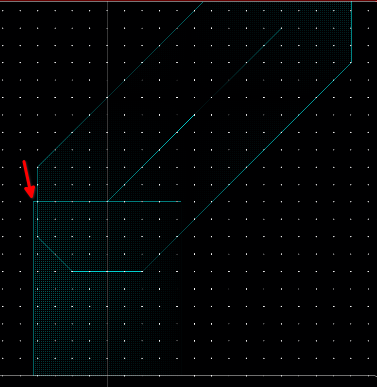 myPath = dbCreatePath(cellID list(metalBot "drawing") list(startXn:startYn (midPointX - offsetX):startYn (midPointX + offsetX):stopYn (stopXn + singleViaSize):stopYn) trackWidth_um "squareFlush")