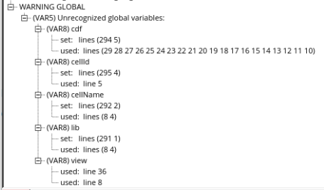 So, I tried wrapping the variables inside the let statement and run the skill lint, the outcome is that it still flags cdf as unrecognized global variable but not the variables lib and cellName.
