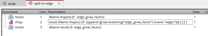 Here's the method itself - hopefully from this (without showing the geo query editor) you can see it's just doing a grow on the "edges" input, and the edges input above is using the everyedge operator on the splitRegions group.. The resize commands below are sizing down the input shape and then sizing up the results afterwards.