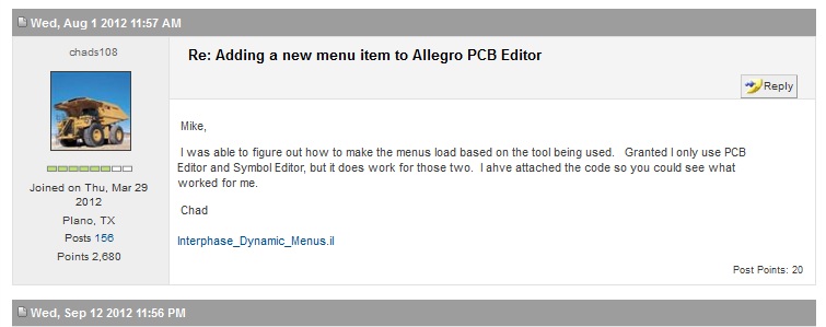 I want to add, or really append, a new menu item to the Allgro PCB Editor menu.  What is the easiest way to handle this without having to modify the installed menu?  Maybe someone has an example that I could follow?