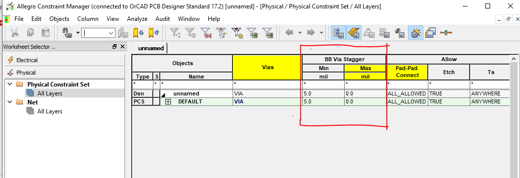 I was confused of "how this BB via stagger works in physical constraint" because it has min and max values. Is that value referring to the spacing between the BB vias or something else?