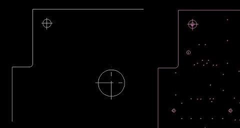 Note: the two features were added as lines on a different layer.  The right side has the drill figures and lines.