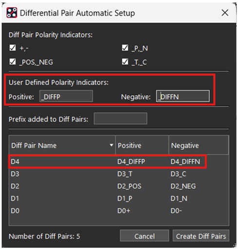 Automatically Create Differential Pairs Based on Polarity Indicators in Net Names