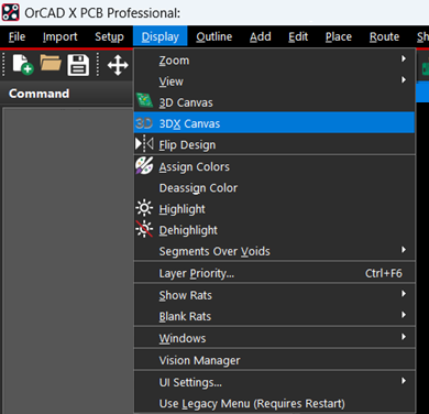 I'm using OrCAD X PCB  Designer on 25.1 with the path S010 and the 3D icon (Not the 3D Canva icon) is missing, I have check all the icon in the menu but i still don't have the 3D icon.