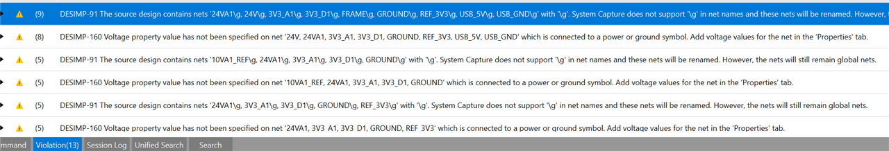after Migrating DE-HDL Designs to Allegro X System Capture i usually get some warnings in violation window such as :