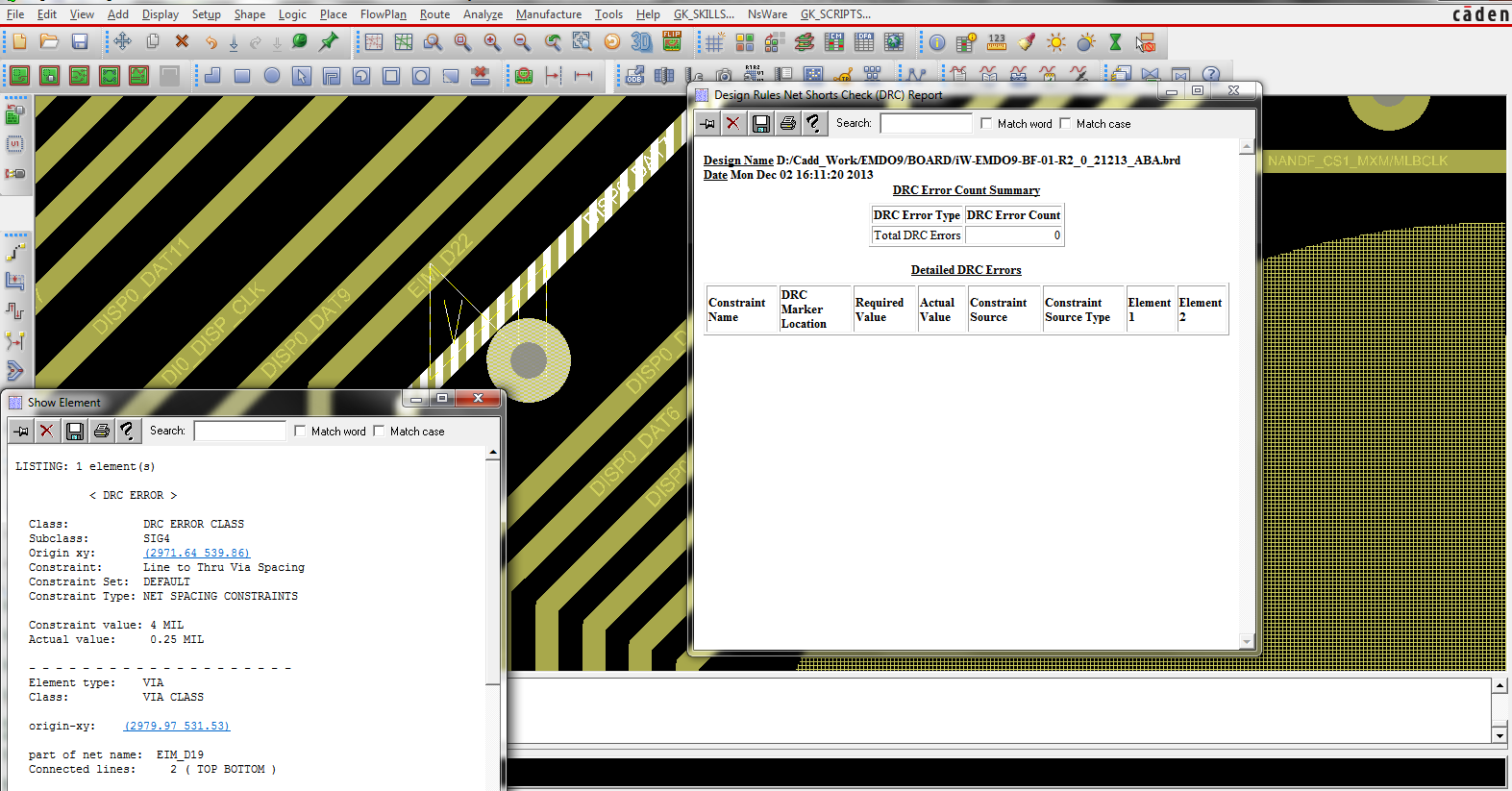 The Net Short DRC is for spacing of zero (0) or less. You can also see this in the Display - Status menu.