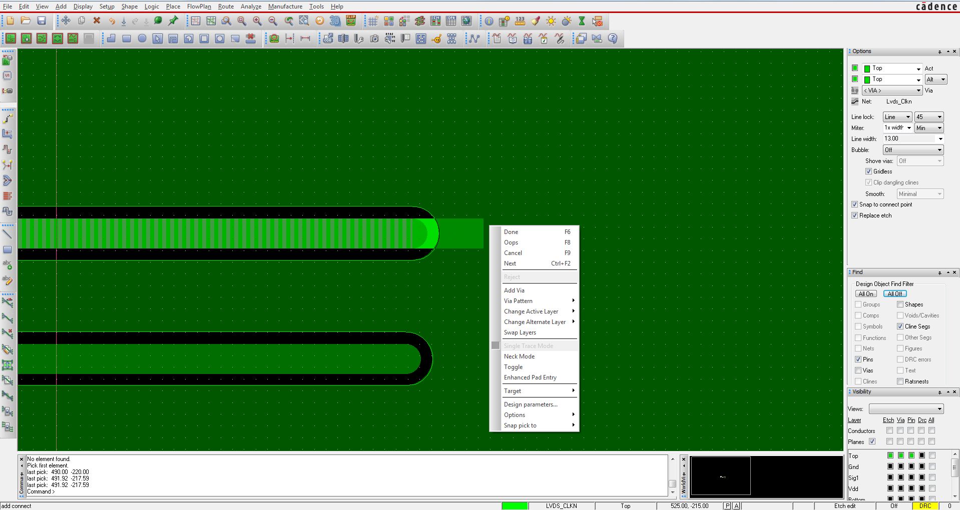 I am having a problem trying to rout some differential pairs in Allegro PCB Designer 16.5.  When I try to add a connect line to an existing differential pair, it only allows me to draw a single trace, and the single trace mode option in the right click menu is greyed out. This is only happening on certain differential pairs and not others.  I have no idea what's going on and could use some help!