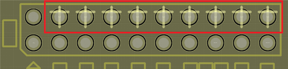 I made padstack for goldpin connector, which has on bottom layer oblong shape and circular shape on other layers. Drill and circular shape has -0.5mm offset in Y direction.