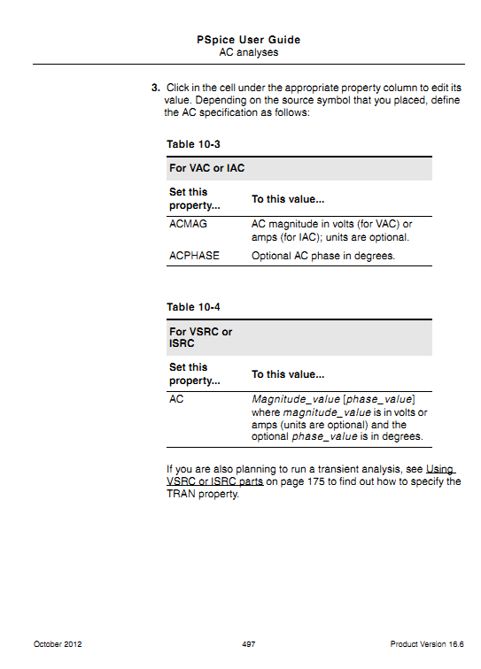 Is there any file that describe the exact meaning of every power source symbols' every Parameters? I tried to found in PSpice user guide.pdf, but  these information seems to be listed in different sections. for example, there is no description about DC in VAC symbol,as the second picture shows.