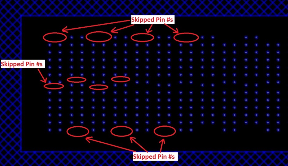 I guess my question is, how can I keep the auto rename pin function from skipping pin numbers just because my footprint isn't a perfect square matrix? Do I have to go in and manually rename each of the 640 pins myself? If so, why is there an auto rename pin function in the first place? Any help would be appreciated.