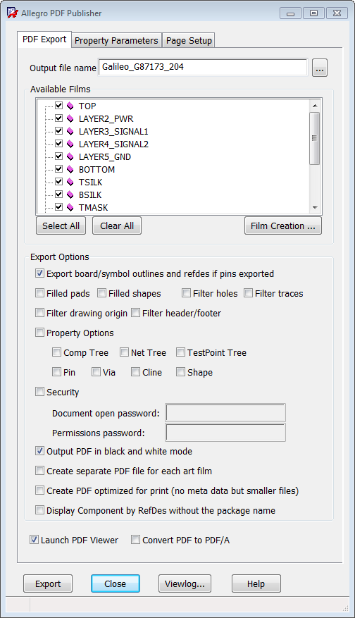 The PDF Export uses the Artwork Film Records, which is required for manufacturing output, so it is pretty simple to generate a PDF file of all the layers quickly at the end of the project.