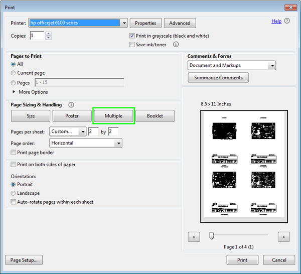 There is a couple ways to accomplish what you are looking for but I would recommend exporting a PDF file of the layers and use the Print option in Adobe Reader to control how many layers are placed on one page.