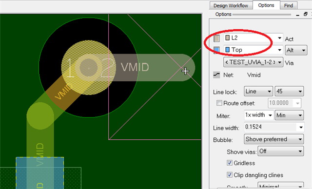 The reason why the first method didn't work is because I didn't have the correct layers selected so PCB Editor thinks I want the via all the way through the PCB.  Not exactly sure how at 2:16 in this video the via popup opens. It would be ideal to select this on the fly. Does Steve have any recommendations on how that menu is activated?