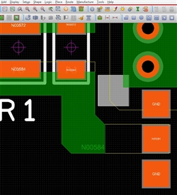 Here is a picture of what it looks like when a shape is connected to a smd pin but the shape to smd pin value is too high. In this case 100mIL.