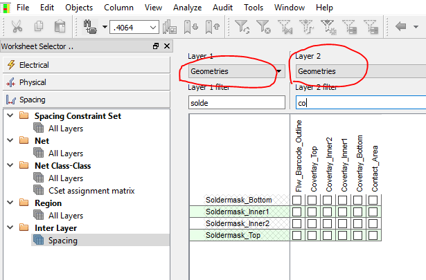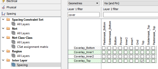 Hello, can you help with an interlay issue? our fpc have both cover lay and solder mask layers we open up the cover coat to let solder mask in at a negative plane. There is a gap distance of .5 mm for vendor registration. allegro interlay pick up the solder mask pin and solder mask shape. I just want the interlay drc to pick up shapes and not pins. can you help?