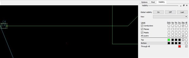 Close PCB Editor, open a windows file explorer window and type %HOME% into the address bar followed by a return. This opens your HOME directory. Go into the pcbenv folder and open the env file with a text editor and add the following entry set shape_layer_visibility_env into the section above ### User Preferences section then save and restart. You should now see a Shp checkbox in the visibility pane next to each layer.