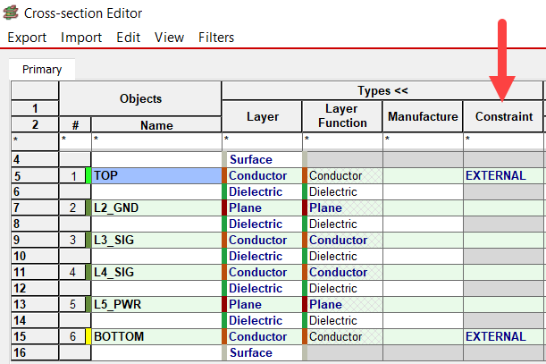 To make it easy you can assign a Layer Sub-Type in the Cross Section Editor to create a sub-group in Constraint Manager for rule assignment.