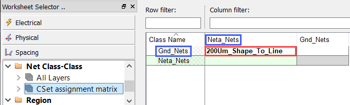4. In Constraint Manager > Net Class-Class > CSet assignment matrix