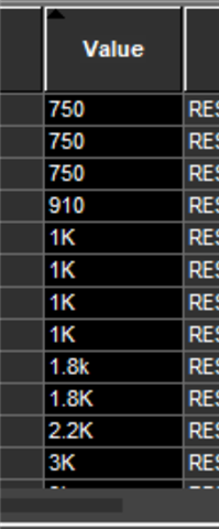 if I double click on the column value for resistors, for instance, I see the magnitude symbols (m, M, k, p, etc) values correctly converted to numeric and sorted accordingly (for instance, a value 150m is correctly placed before a value of 10).
