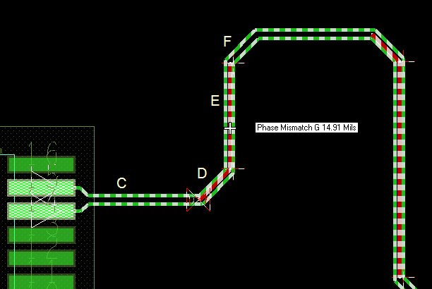 Trying to understand Dynamic Phase ... in the image below, which is not a real design - I am attempting to put together an in-house tutorial - the DRC reports "Phase Mismatch G 14.91 Mils".