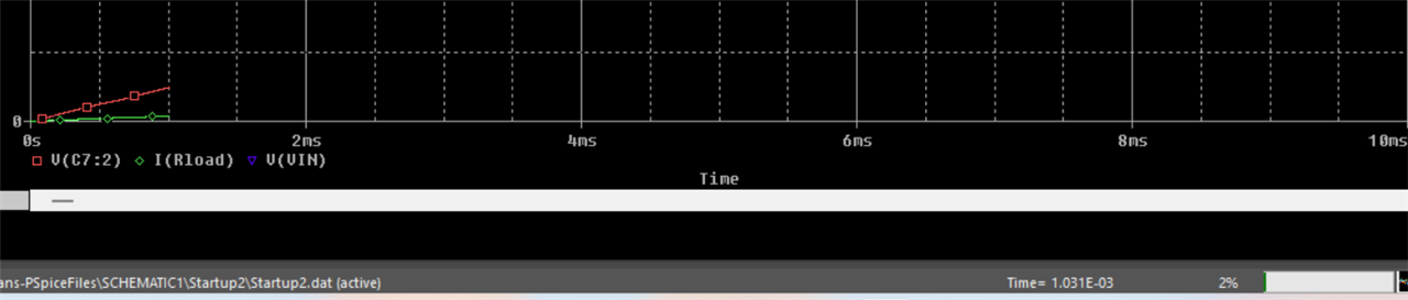 "Hey, I’m running a simulation with the attached circuit and config, but it’s running incredibly slow. I’ve set the Run To Time to 50ms with a Maximum Step Size of 100ns. That’s 500,000 steps minimum, and it's taking forever. Does the step size need to be this granular, or is there something in the circuit causing a convergence bottleneck?""Hey, I’m running a simulation with the attached circuit and config, but it’s running incredibly slow. I’ve set the Run To Time to 50ms with a Maximum Step Size of 100ns. That’s 500,000 steps minimum, and it's taking forever. Does the step size need to be this granular, or is there something in the circuit causing a convergence bottleneck?"  , This simulation is after 5 Minutes