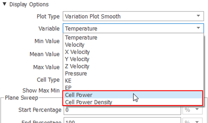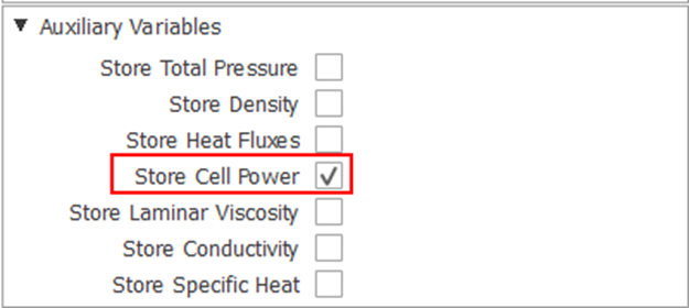 An auxiliary variable, Store Cell Power, has been added to Solution Control. When selected, two new plot types, Cell Power and Cell Power Density, are available to be plotted on a result plane.